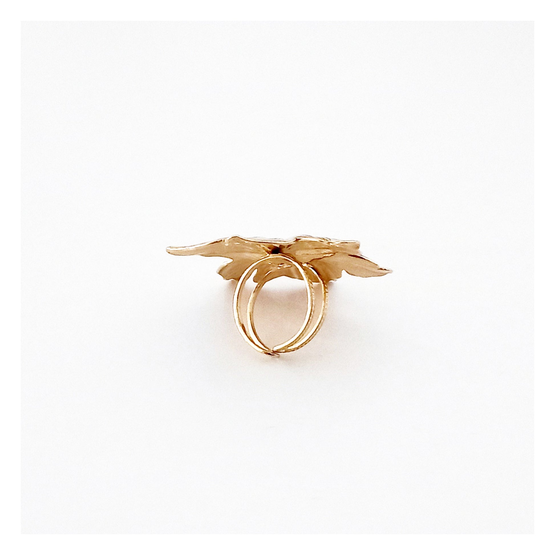 Un moderno anillo ajustable en forma de flor grande en acero inoxidable baño dorado para mujer.
