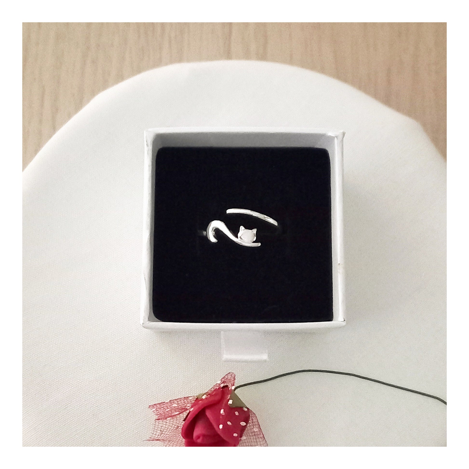 Un bonito anillo ajustable al dedo en forma de gato en plata de ley para mujer.