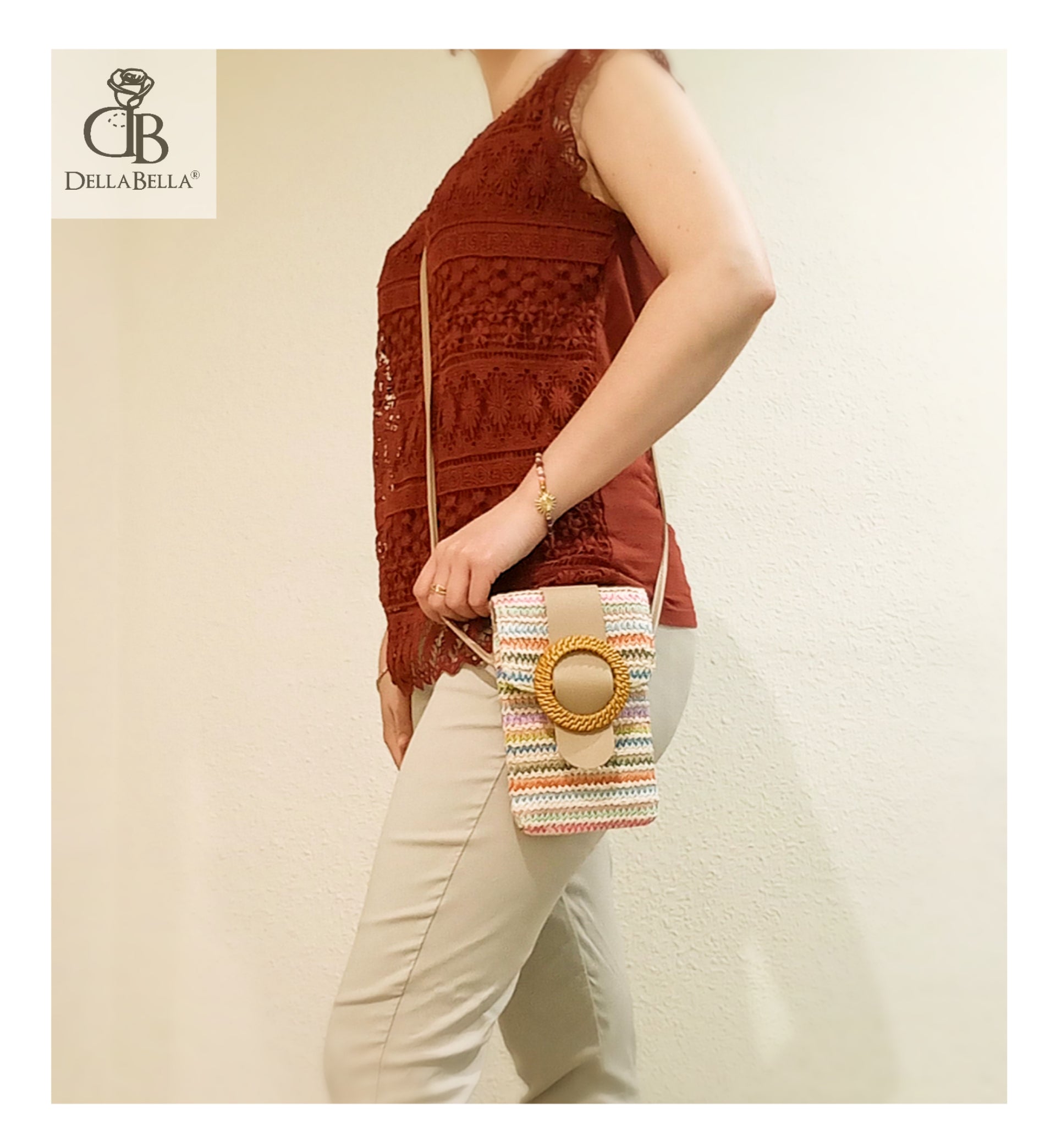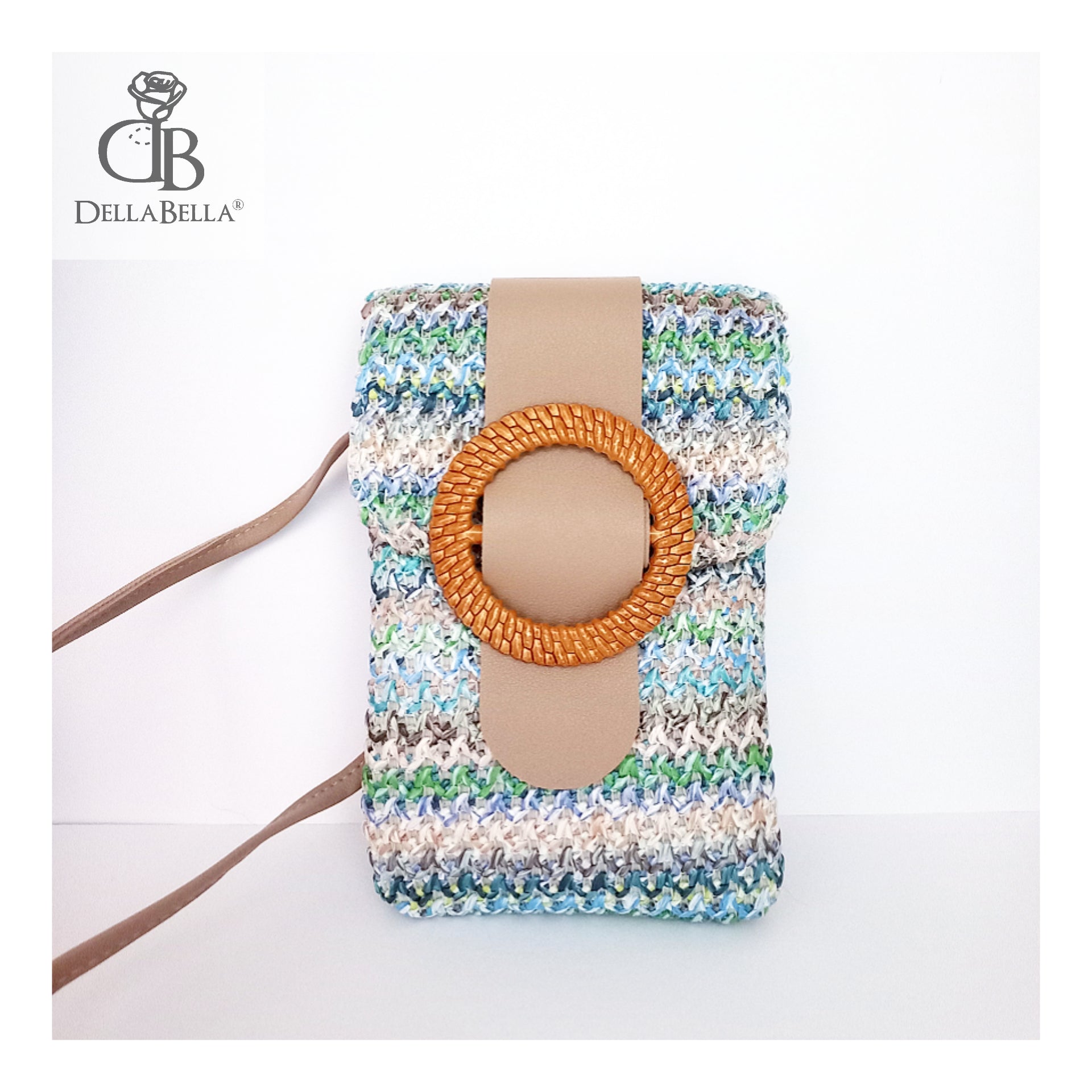 Un bolsito pequeño de ganchillo de varios colores, donde podrás meter tú móvil, llaves y otras cosas.