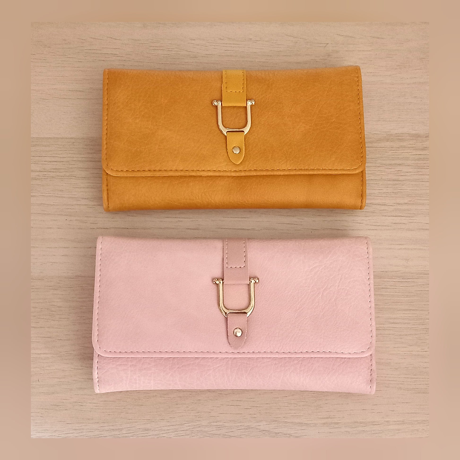 Una bonita cartera larga con varios compartimentos para tarjetas, billetes y bolsillo cremallera para guardar las monedas, adorno en dorado.