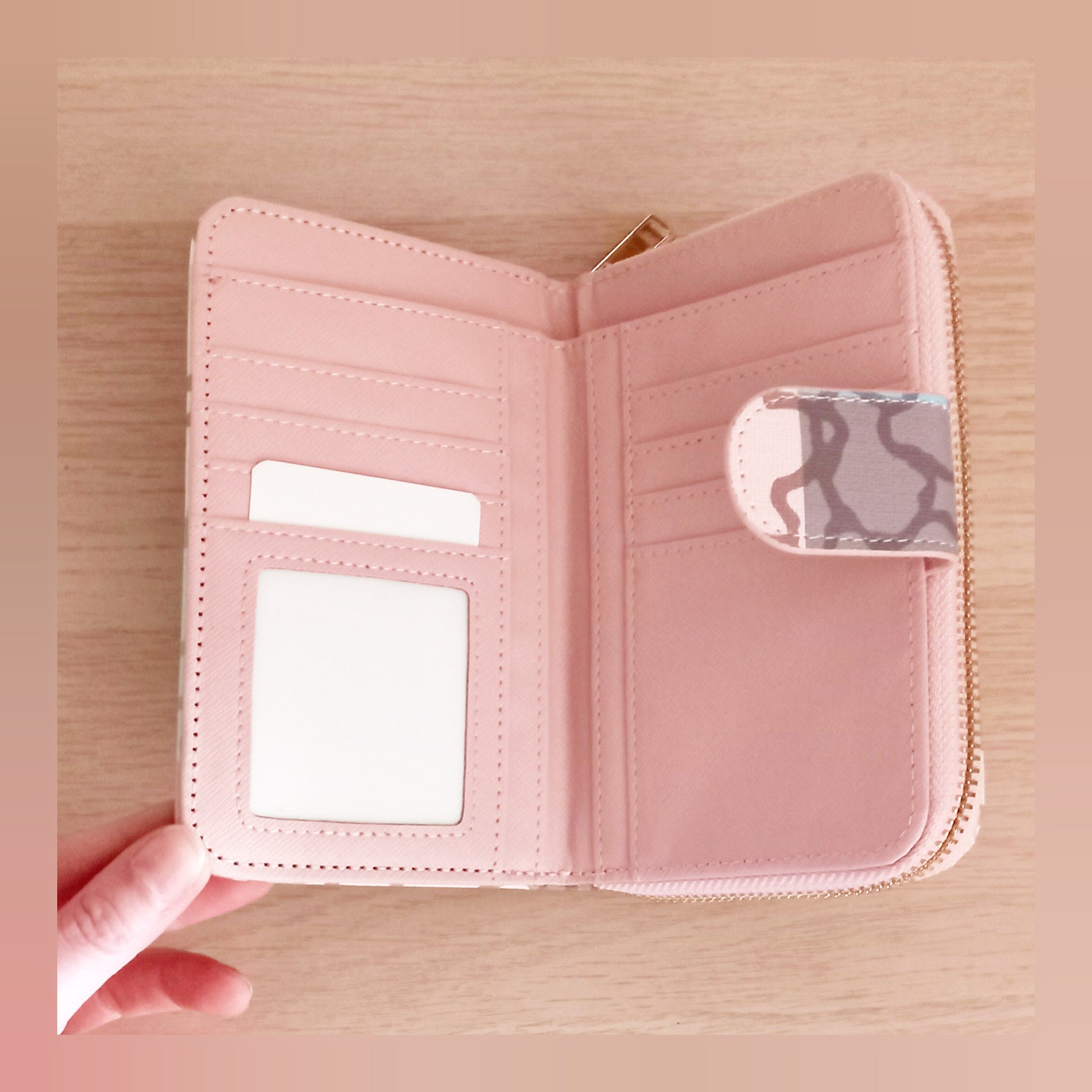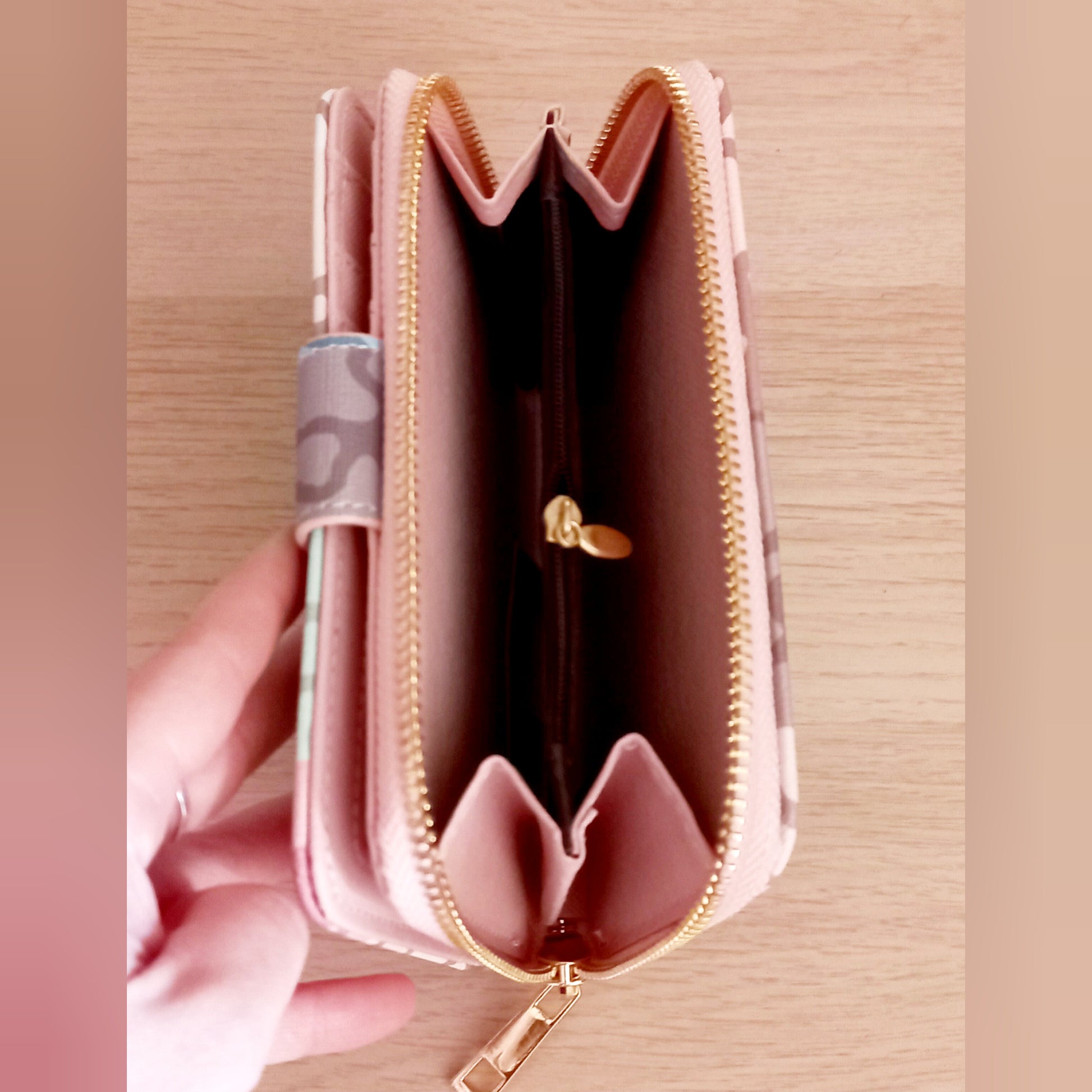 Una bonita y alegre cartera con varios compartimentos para tarjetas, billetes y fotos, por detrás tiene el monedero con cremallera. Dibujo de osos en varios colores y rosa por dentro.