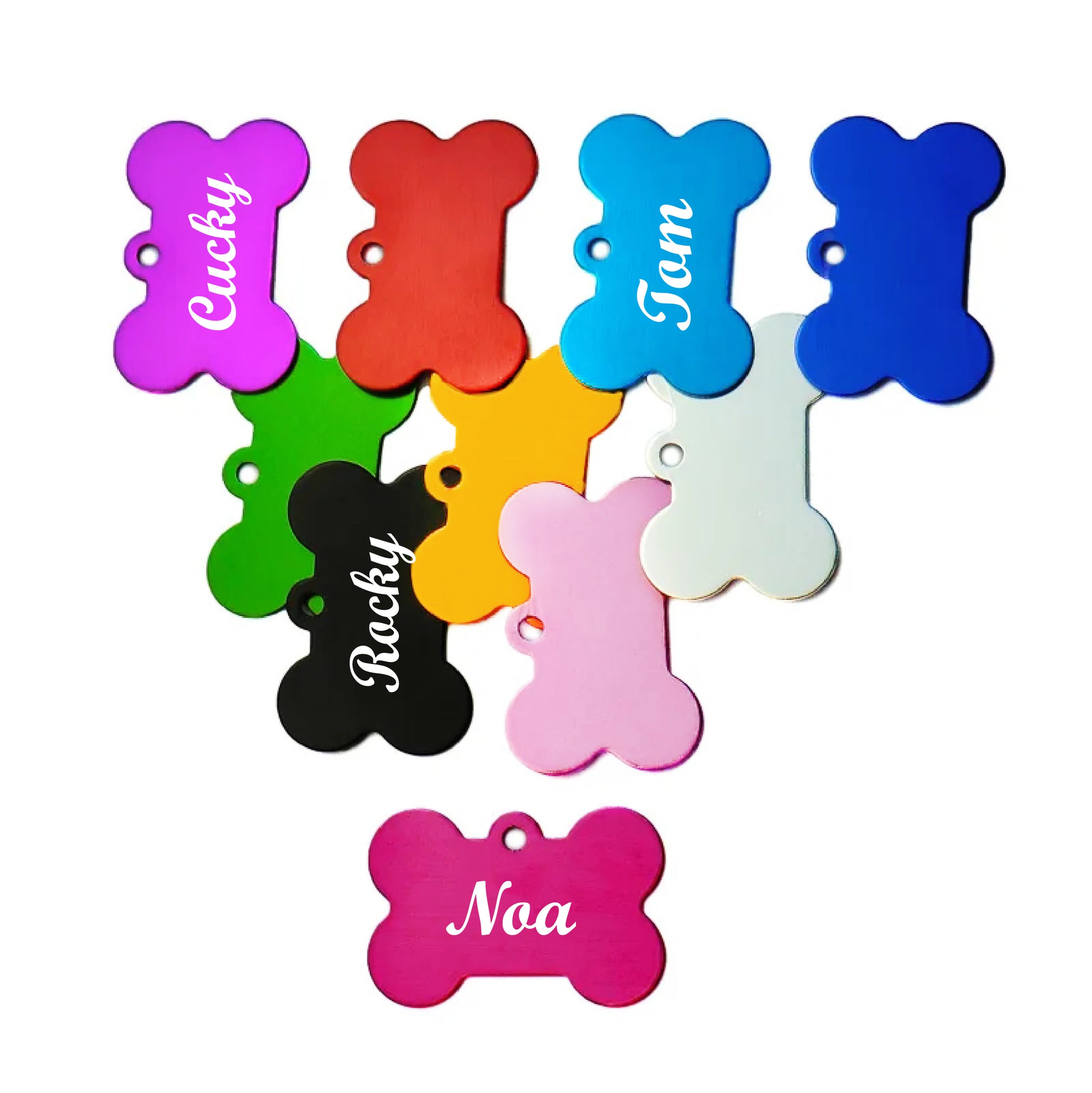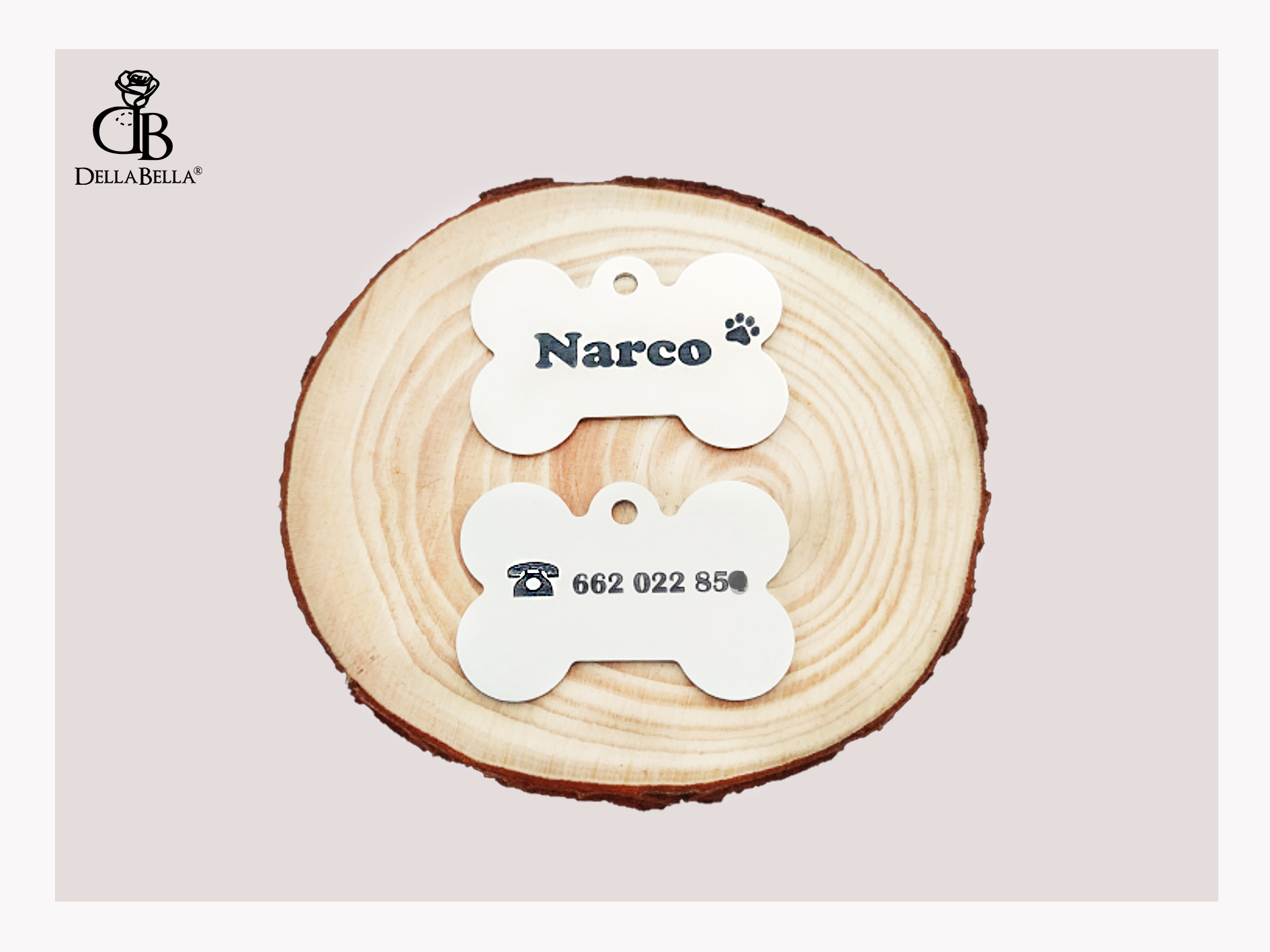 Chapa identificativa para perros de aluminio para personalizar y grabar su nombre por delante y el teléfono por detrás, no pesa.