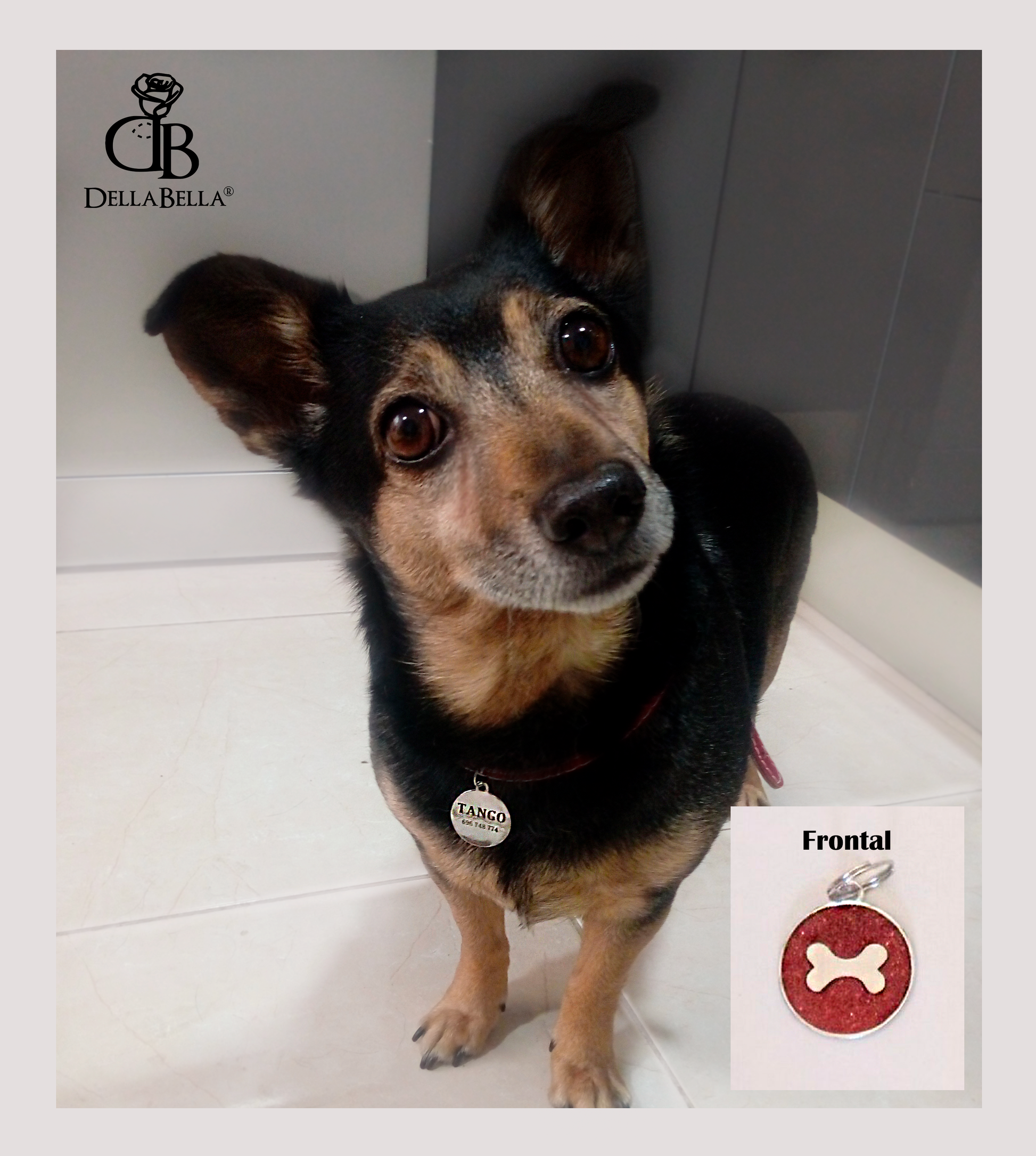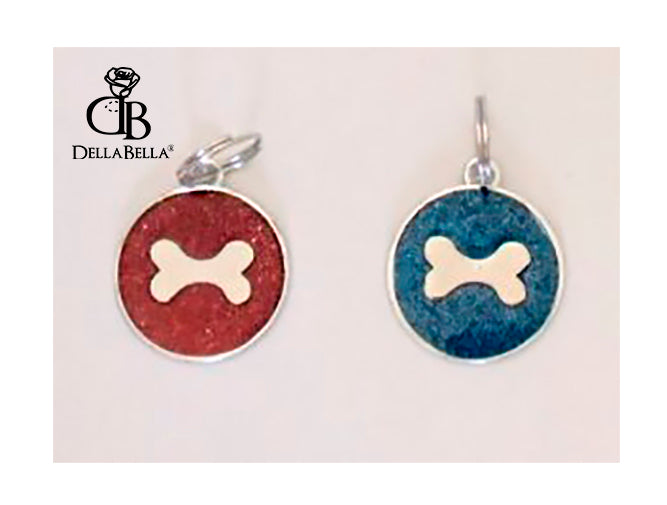 Chapa identificativa para mascotas de acero inoxidable y color rojo o azul brillante y dibujo de hueso. Graba por detrás su nombre y/o teléfono de contacto por si se pierde tu mascota.