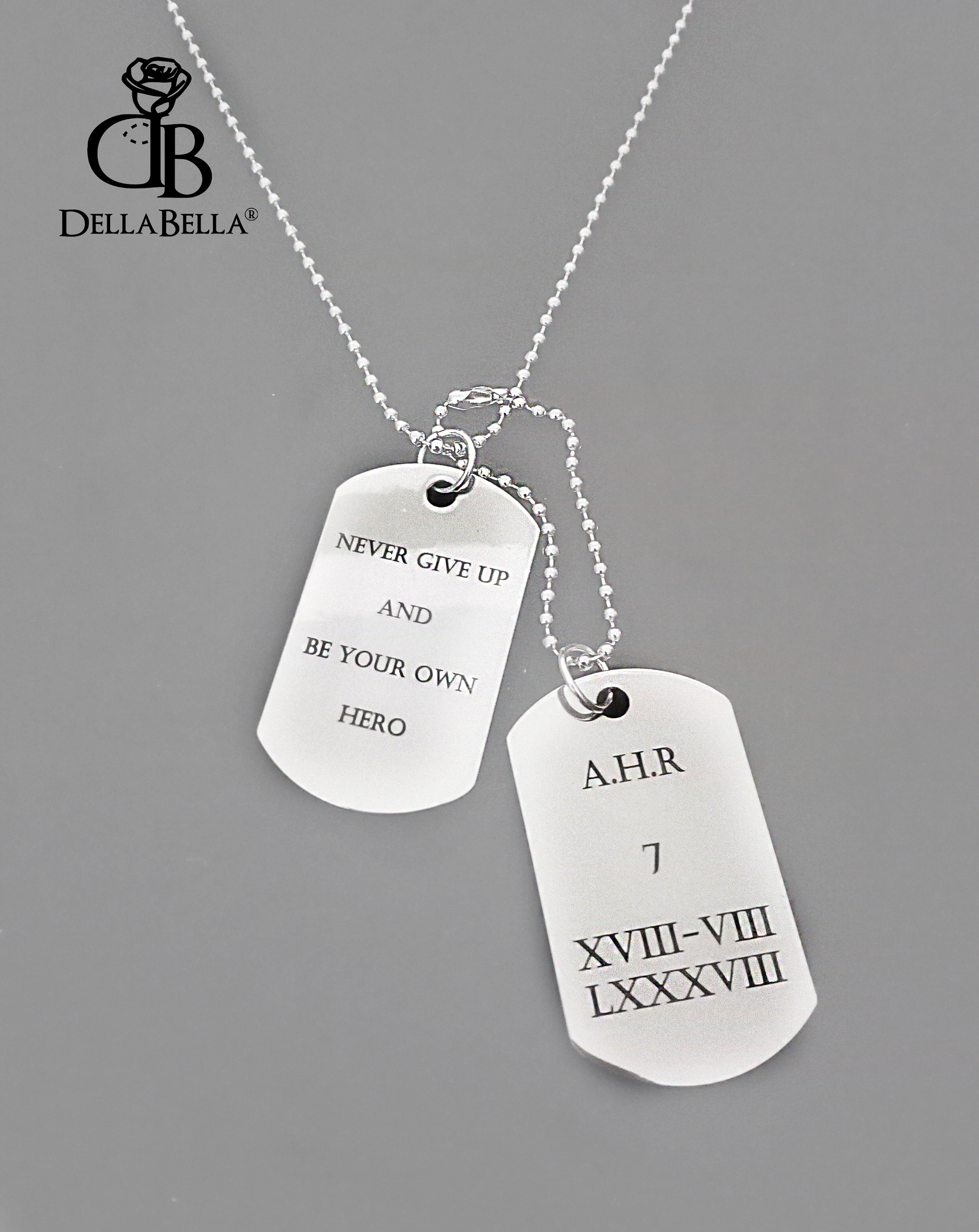 Collar y chapas militares bañadas en plata, no pesan y son más finas que las de acero.