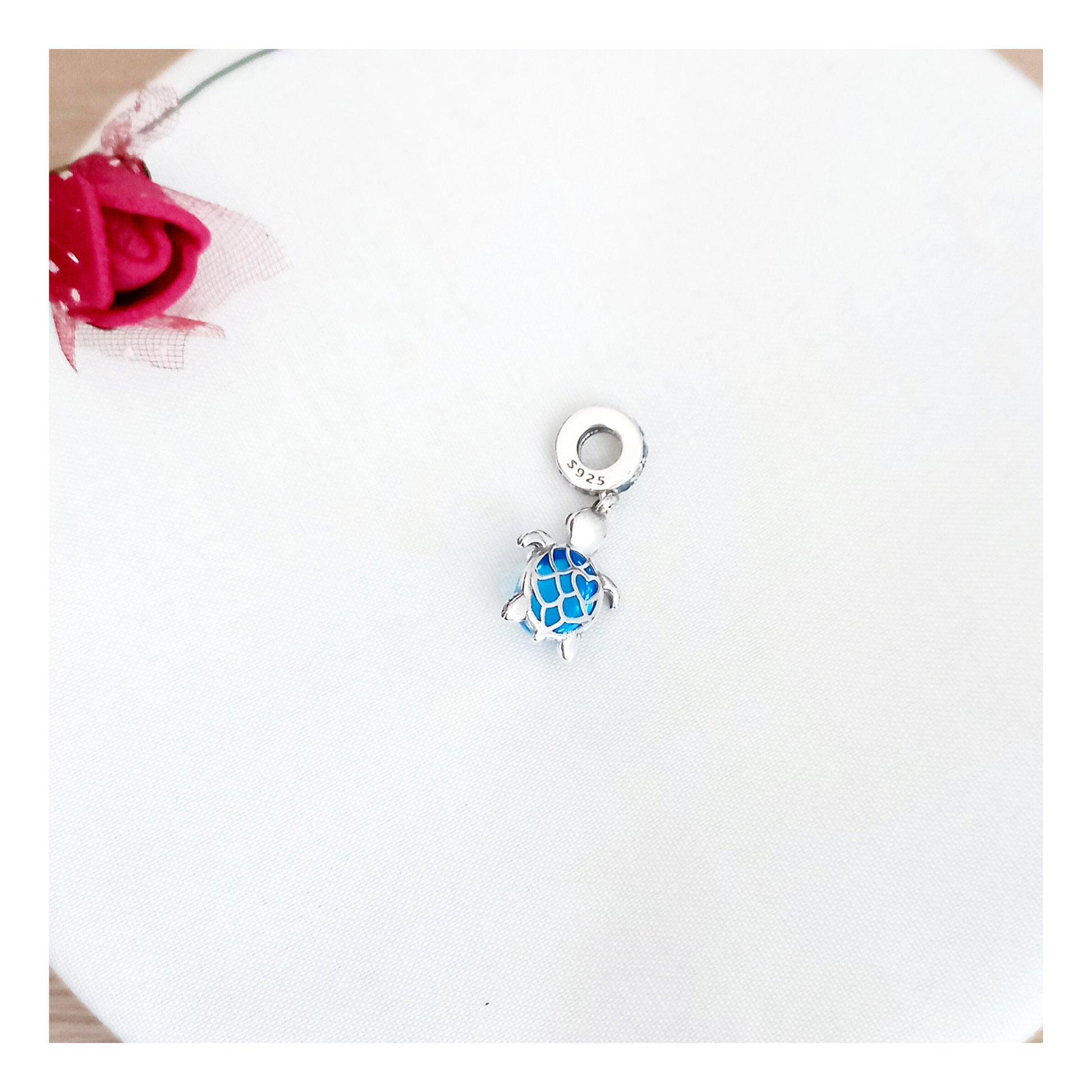 Precioso colgante charm de tortuga en cristal azul en plata de ley 925, especial para pulsera charms o collar.
