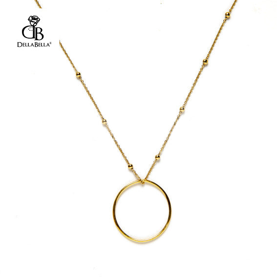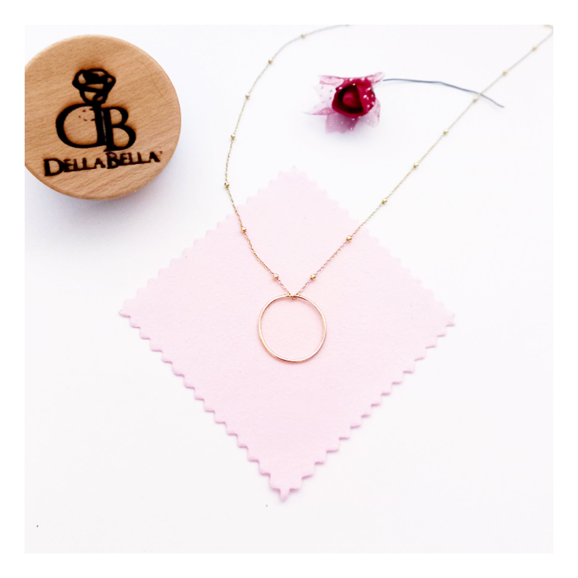 Un precioso y elegante collar con cadena bolitas y colgante de círculo que simboliza la vida, en plata de ley baño oro.