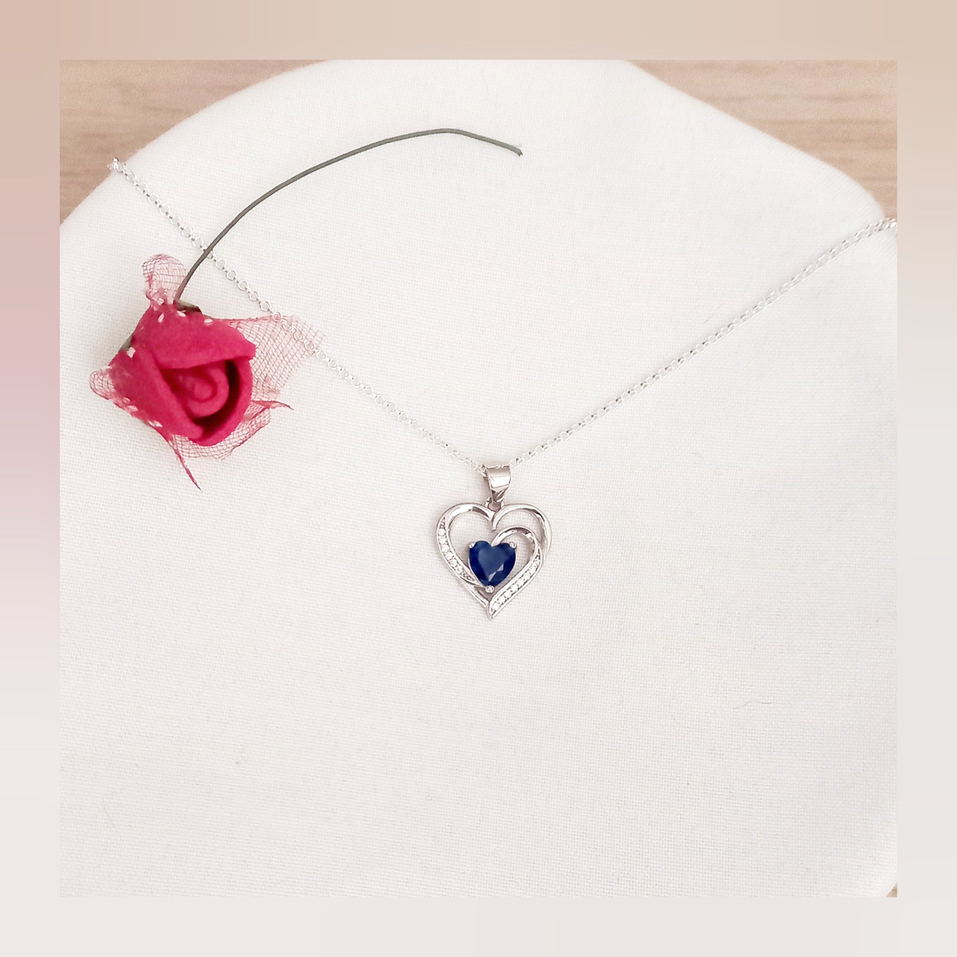 collar con colgante de corazón con cristal azul austriaco en plata rodiada para mujer.