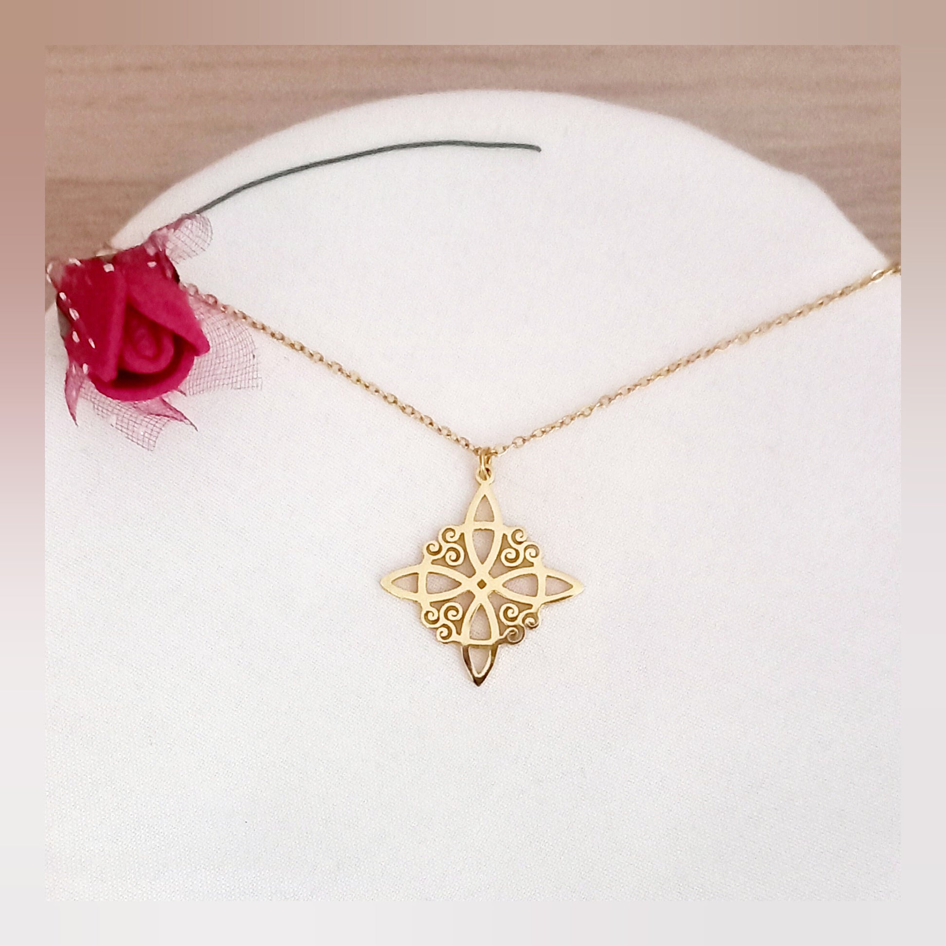 Un collar especial con el símbolo del nudo de brujas ( 3cm) en acero inoxidable para mujer.