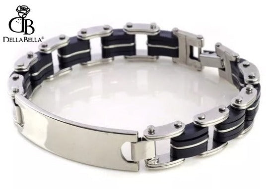 Esclava elegante de acero inoxidable con entrepiezas en negro para grabar.