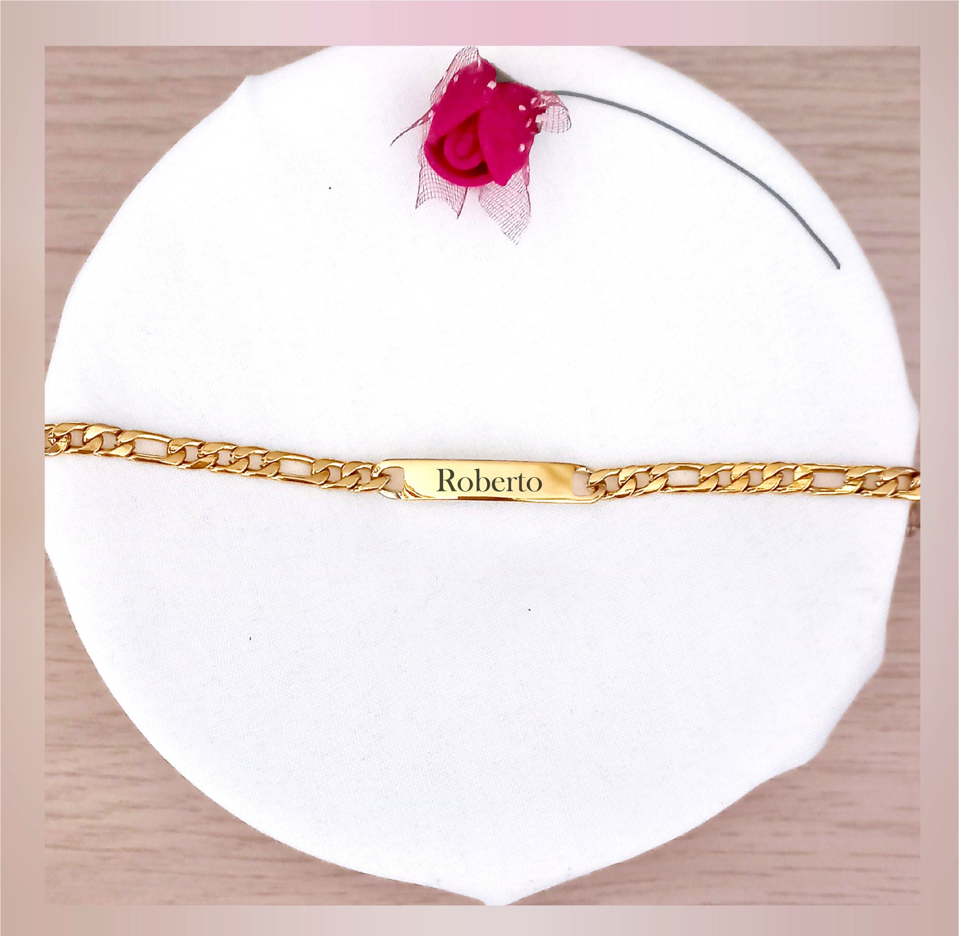 Una pulsera de eslabones de acero para grabar el nombre o fecha con la letra que más te guste.