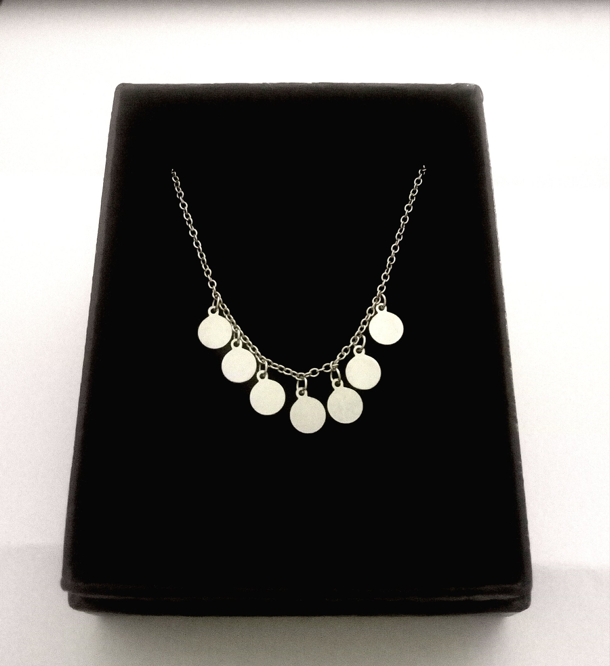 Preciosa gargantilla de 7 placas de 6 mm en Plata de ley rodiada.
