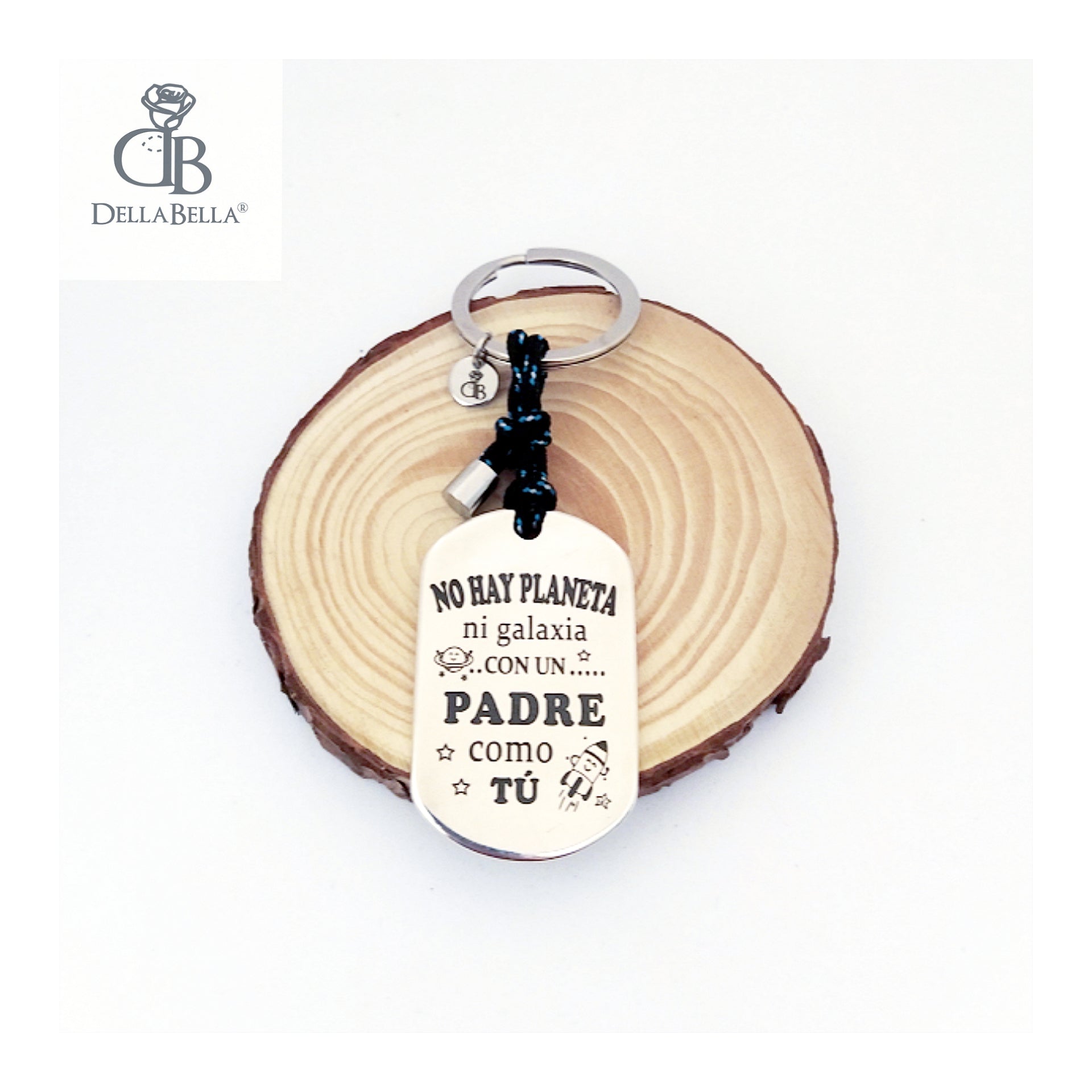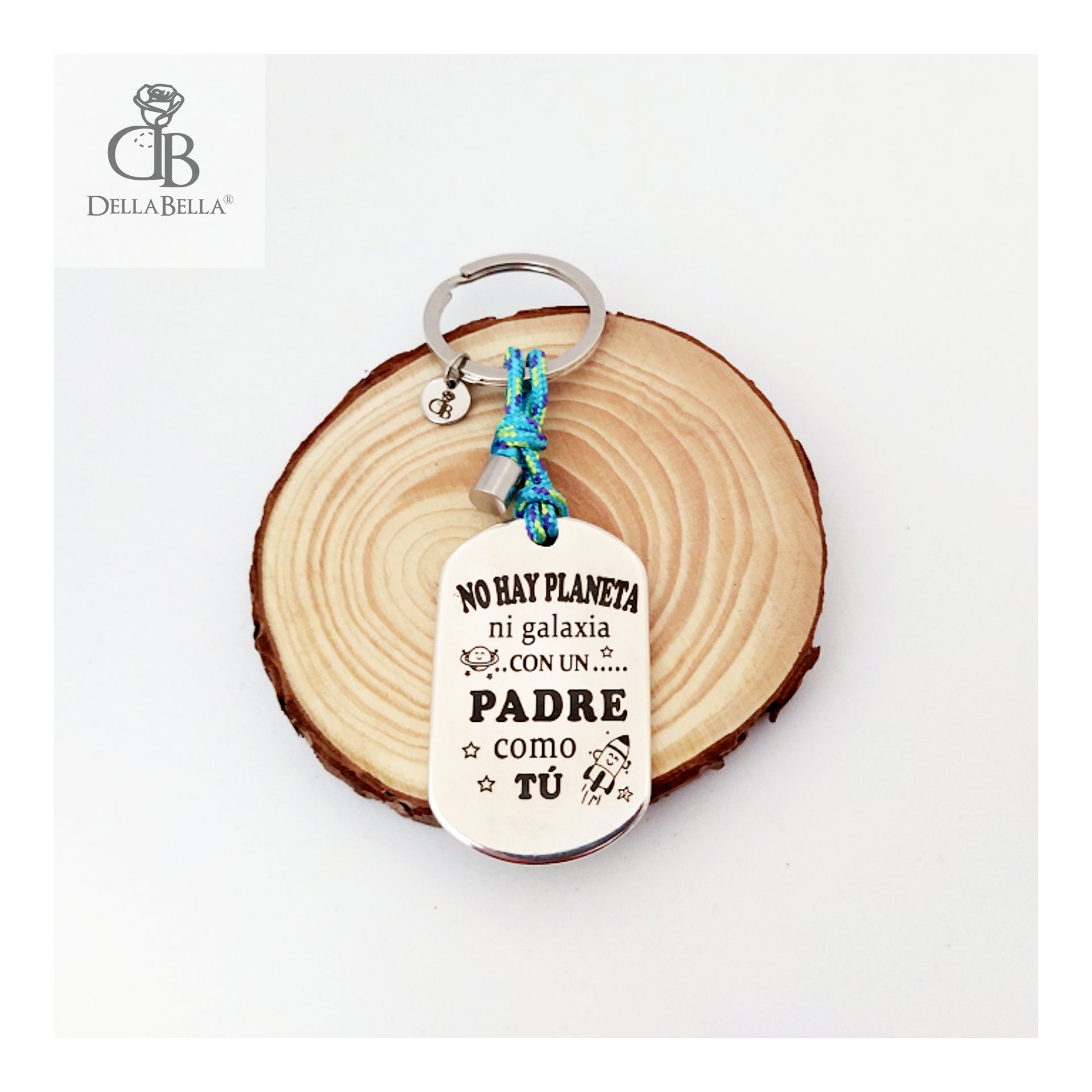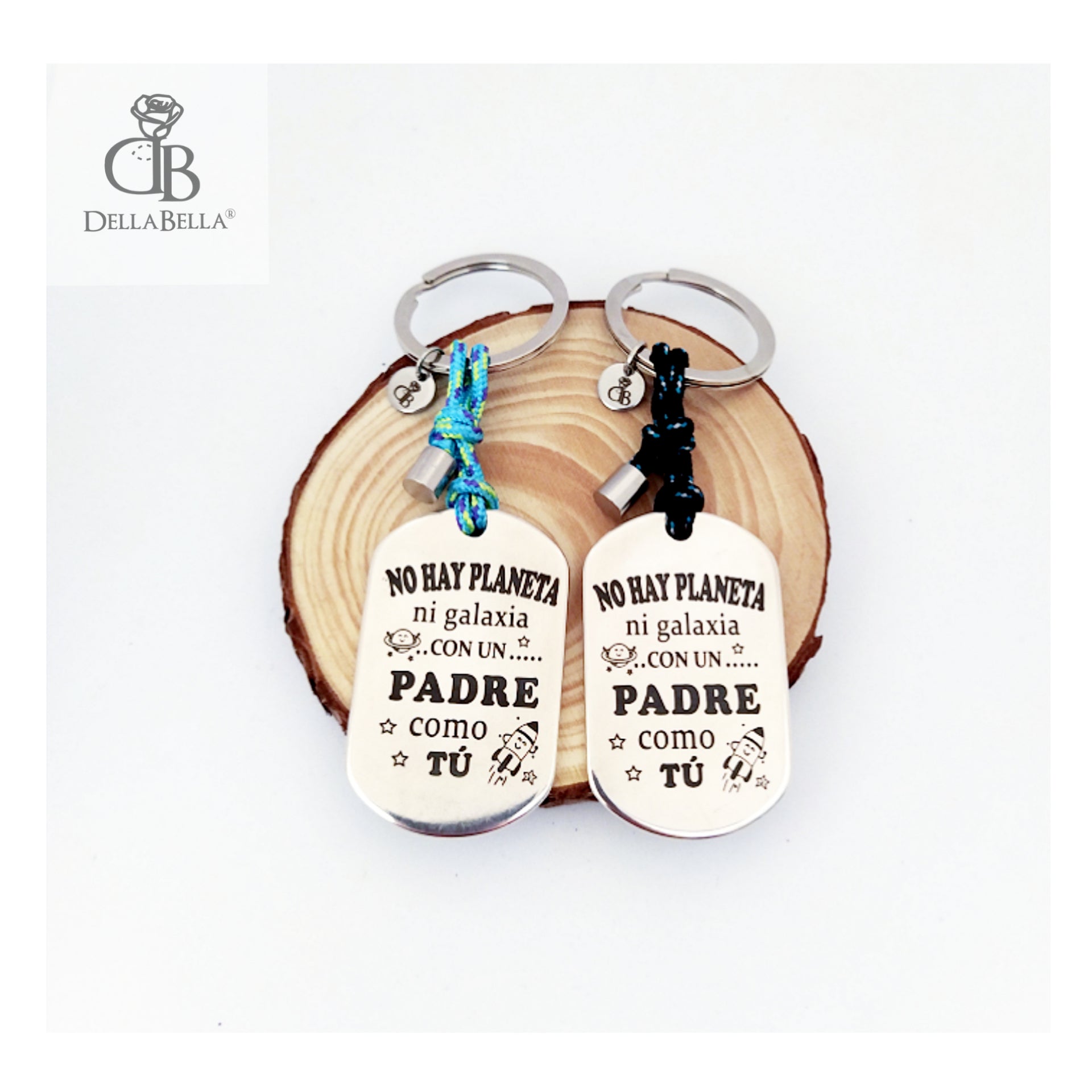 Llavero personalizado con cuerda de 2 colores, entrepieza rectangular de zamak (plata antigua) para grabar lo que quieras o escoger entre los diseños que ya disponemos.