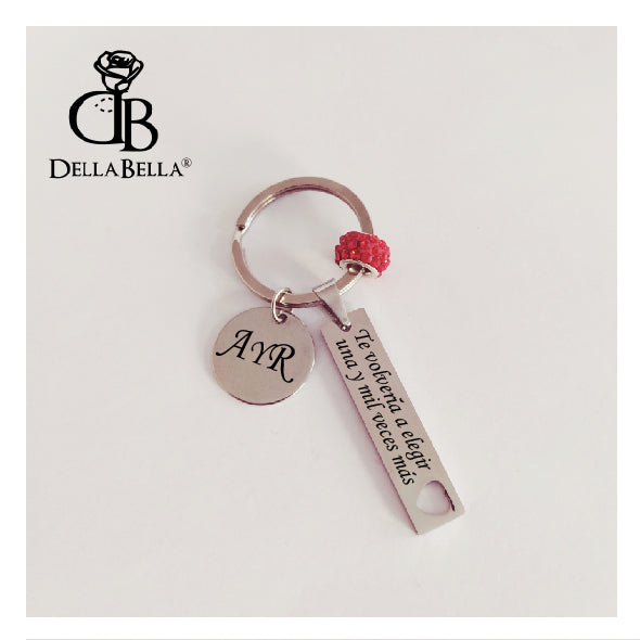 Bonito llavero de acero inoxidable con 2 chapitas para poner vuestras iniciales y decirle lo que sientes.