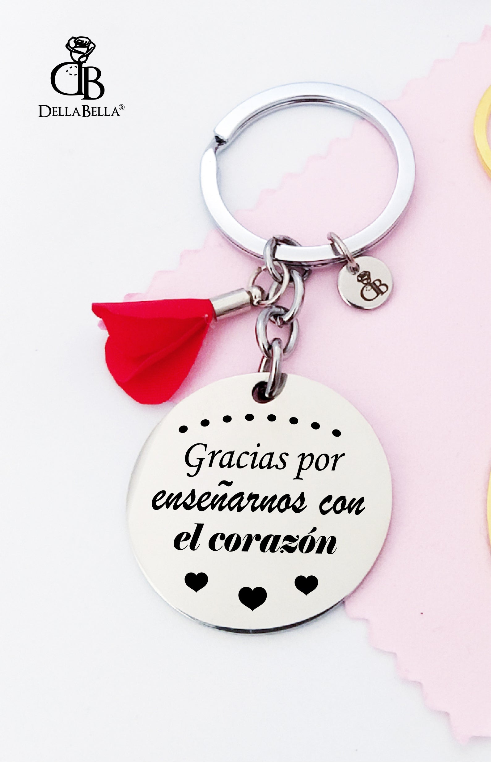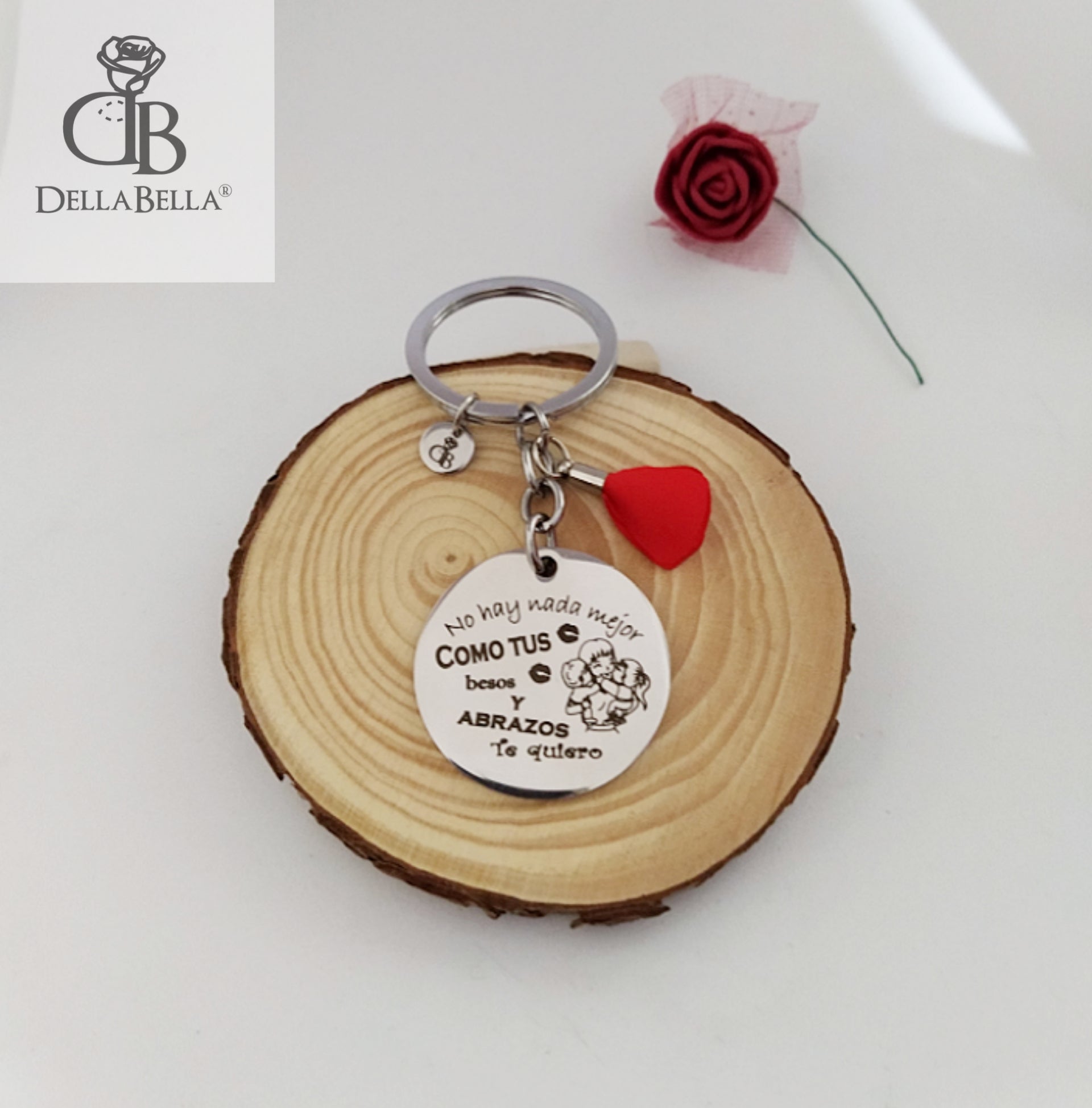 Un llavero bonito con placa de acero de 30mm en acero y colgante flor de tela para personalizar como quieras. Elije el color de la flor y escribe a continuación, la frase que quieres grabar o escríbelo en el cuadrito.