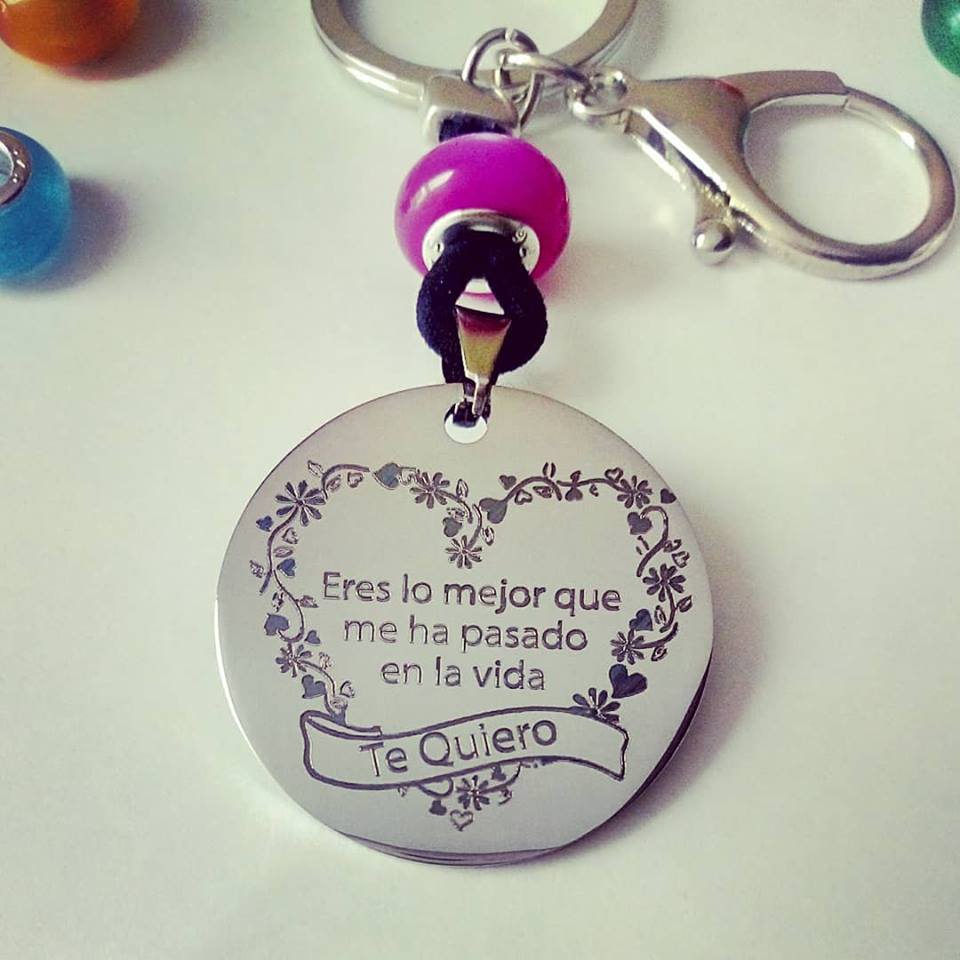 Llavero para personalizar con una chapa de acero redonda (35 mm), cuerda negra de algodón y bolita del color que más te guste. Regalo para San Valentín, natalicio, amistad, empieza tu diseño y haz feliz a esa persona especial para ti.