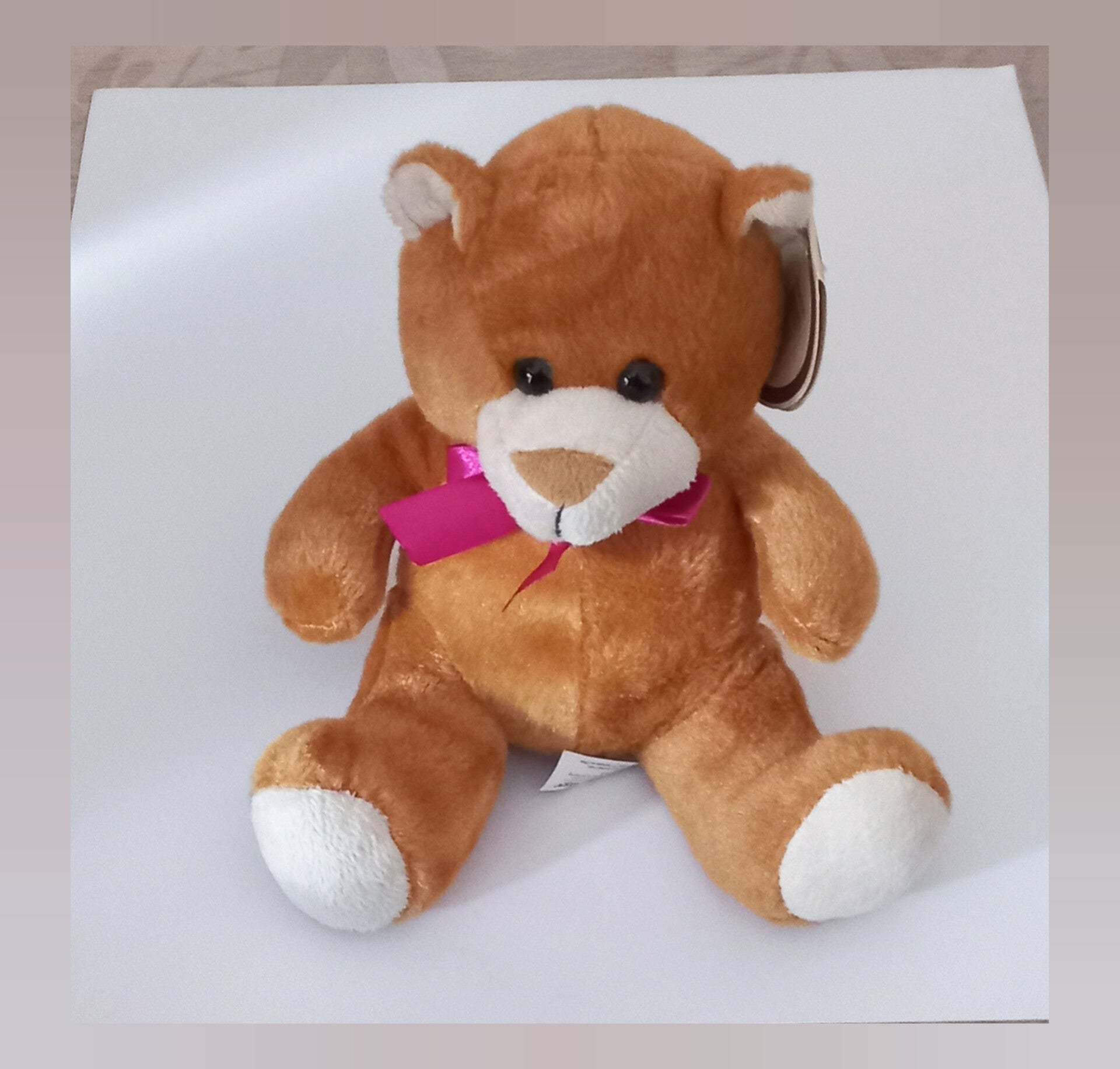 Un peluche pequeño en forma de oso marrón con lacito para regalar en San Valentín y puedes comprar otros artículos para hacer tu pack especial, consúltanos y te asesoramos.