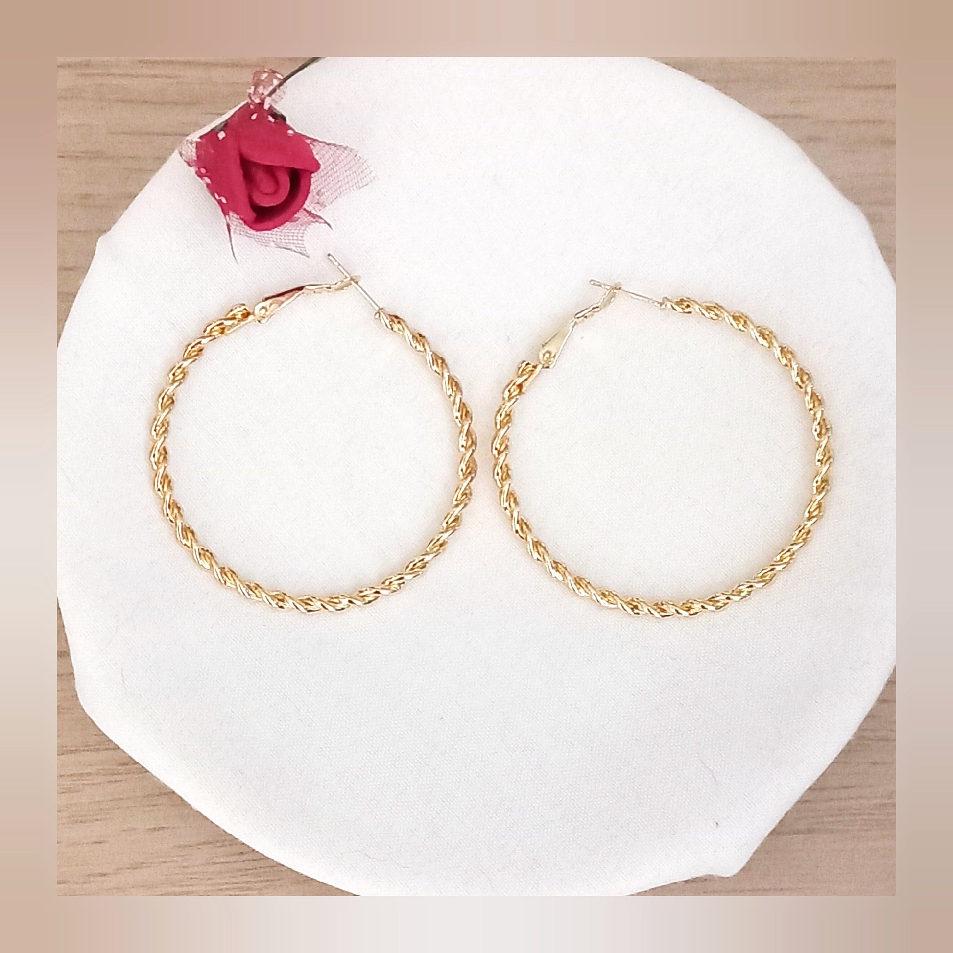 Pendientes aros grandes rizados en dorado de acero inoxidable.