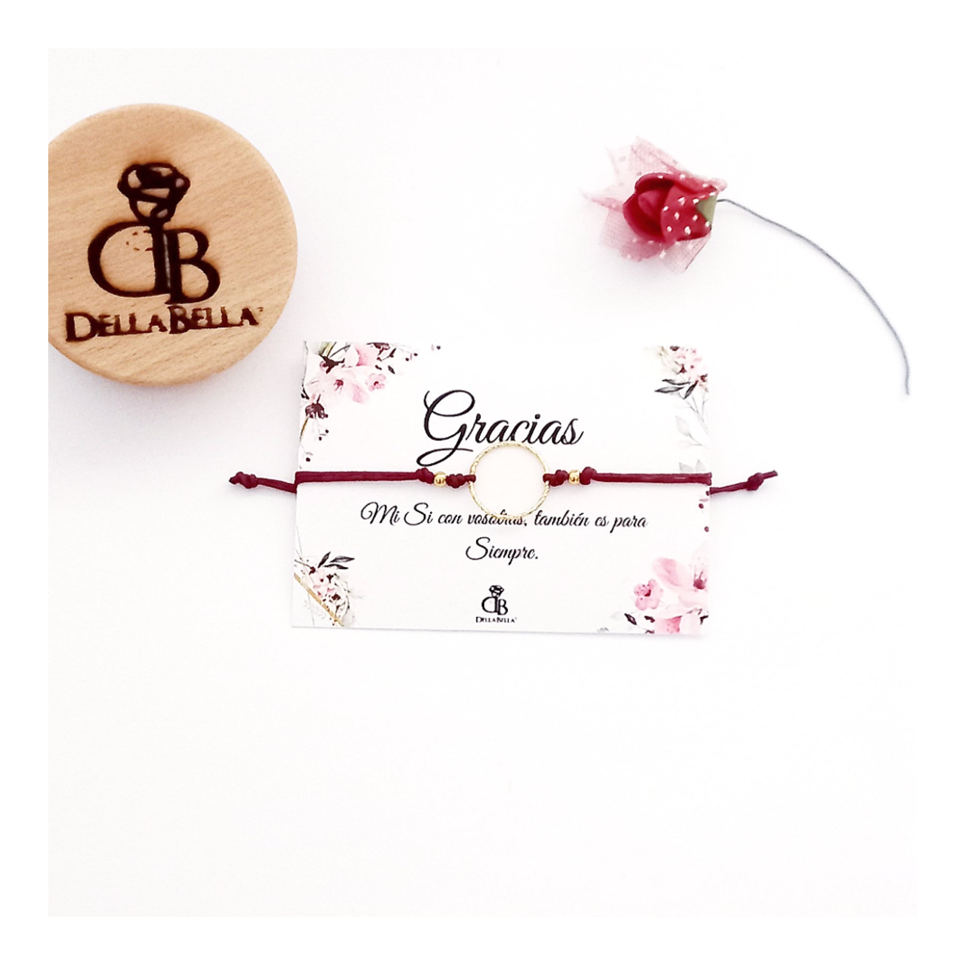 Una bonita pulsera de hilo náutico, con un círculo de plata en medio y 1 bolita en cada extremo. Disponible en color plata o dorado.