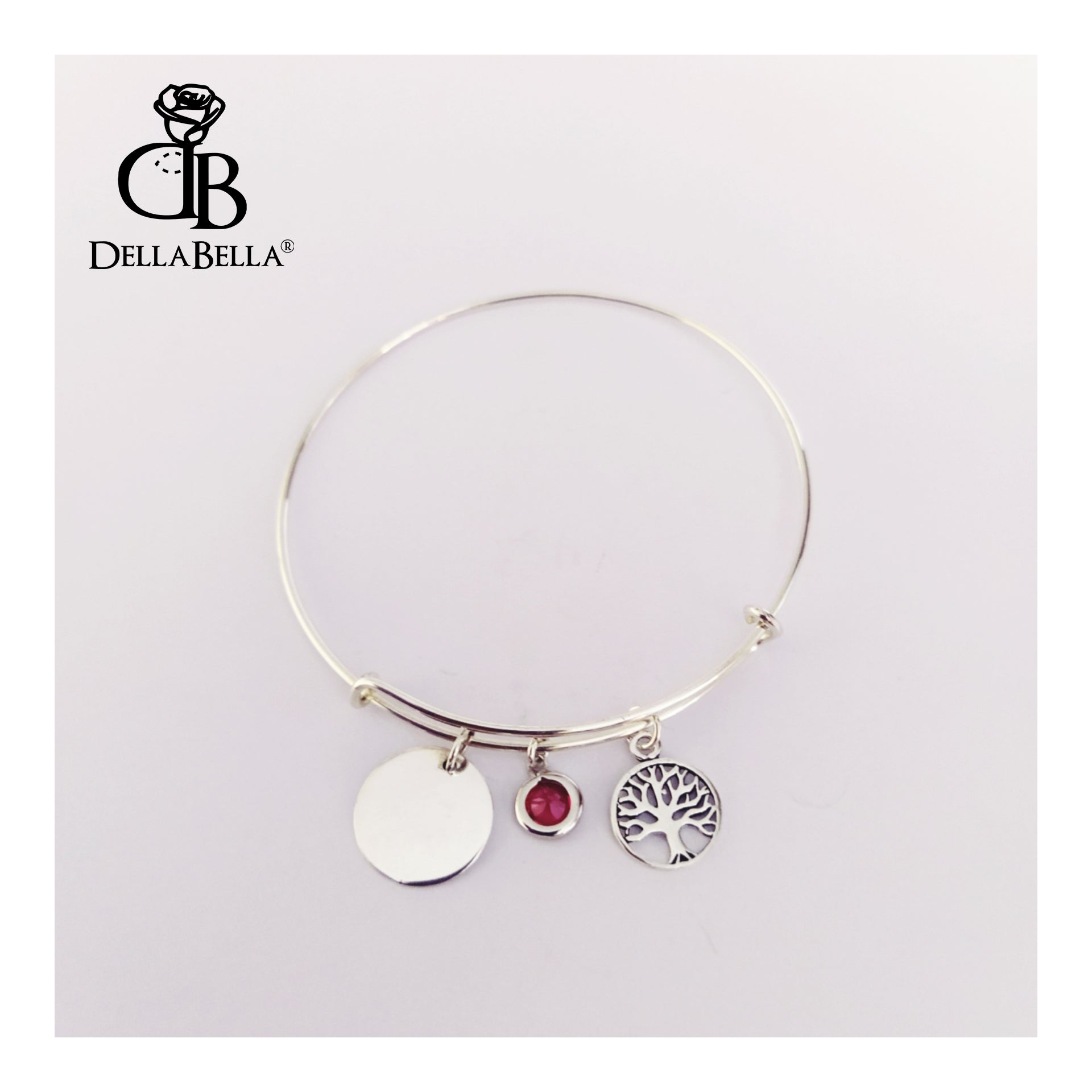 Preciosa pulsera para niña o mujer con muñeca fina, de aro semirrígido con colgante del árbol de la vida, circonita y placa de 15 mm en plata de ley para personalizar como quieras.