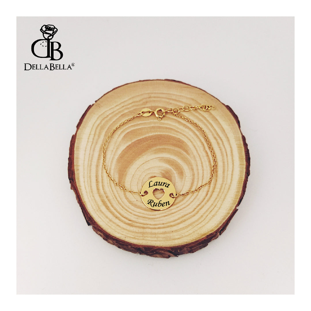Pulsera cadena y chapa de plata de ley o color oro, con cierre ajustable.
