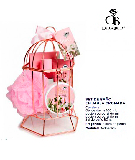 Este precioso set de baño en jaula rosa contiene: